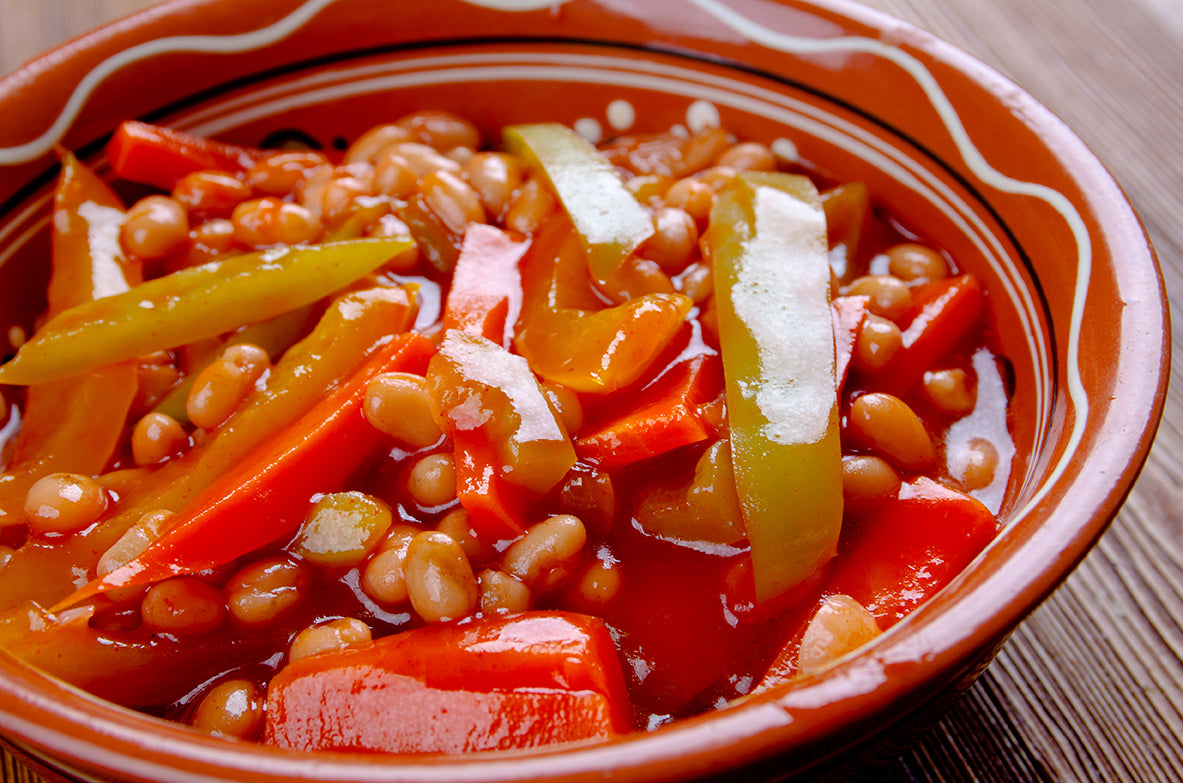 Typische Zutaten sind Zwiebeln, Paprika, Tomaten, geraspelte Karotten und Baked Beans.