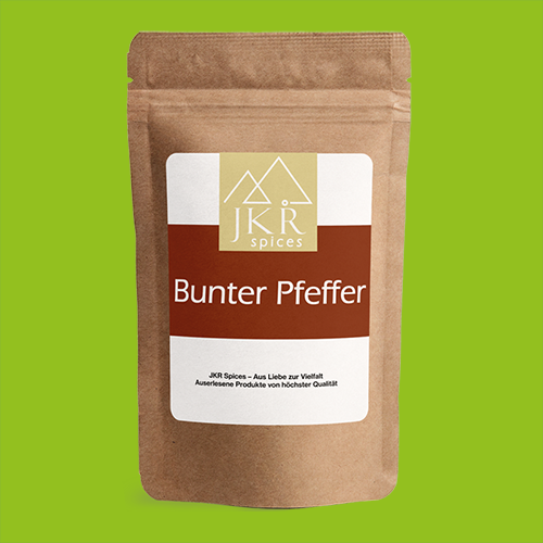 Dieser Bunte Pfeffer ist ideal für Steaks, Fisch, Gemüse, Pasta, Salate und feine Saucen. Die ausgewogene Kombination aus verschiedenen Pfeffersorten liefert Schärfe, Frische und eine leicht fruchtige Note.